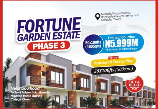 N 5,999,000.00*FORTUNE GARDEN ESTATE PHASE III* Fortress Symbols Nig Ltd is extremely delighted to present to you yet another beautiful and luxury estate fortune Garden Estate Phase lll along Poly/Ihiagwa Road. Estate with excellent future prospects and very high return on investment. Very suitable for hostels and other commercial activities. Rewarding yourself with a plot or […]