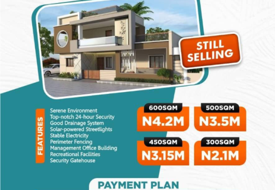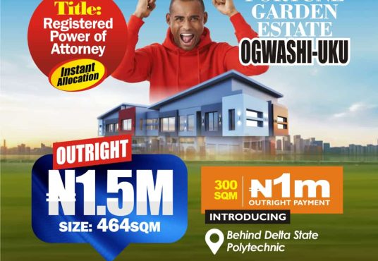 N 1,500,000.00WELCOME TO FORTUNE GARDEN ESTATE OGWASHI-UKU DELTA STATE (AKA THE CITADEL GARDENS) Totally free from government acquisition. The estate is in a built-up area. You can start building immediately. Very suitable for HOSTELS, RESIDENTIALS, HOTELS AND ANY OTHER COMMERCIAL PURPOSES. Flexible payment plans available for 3 months, 6 months, 9 months and 12 months respectively. […]